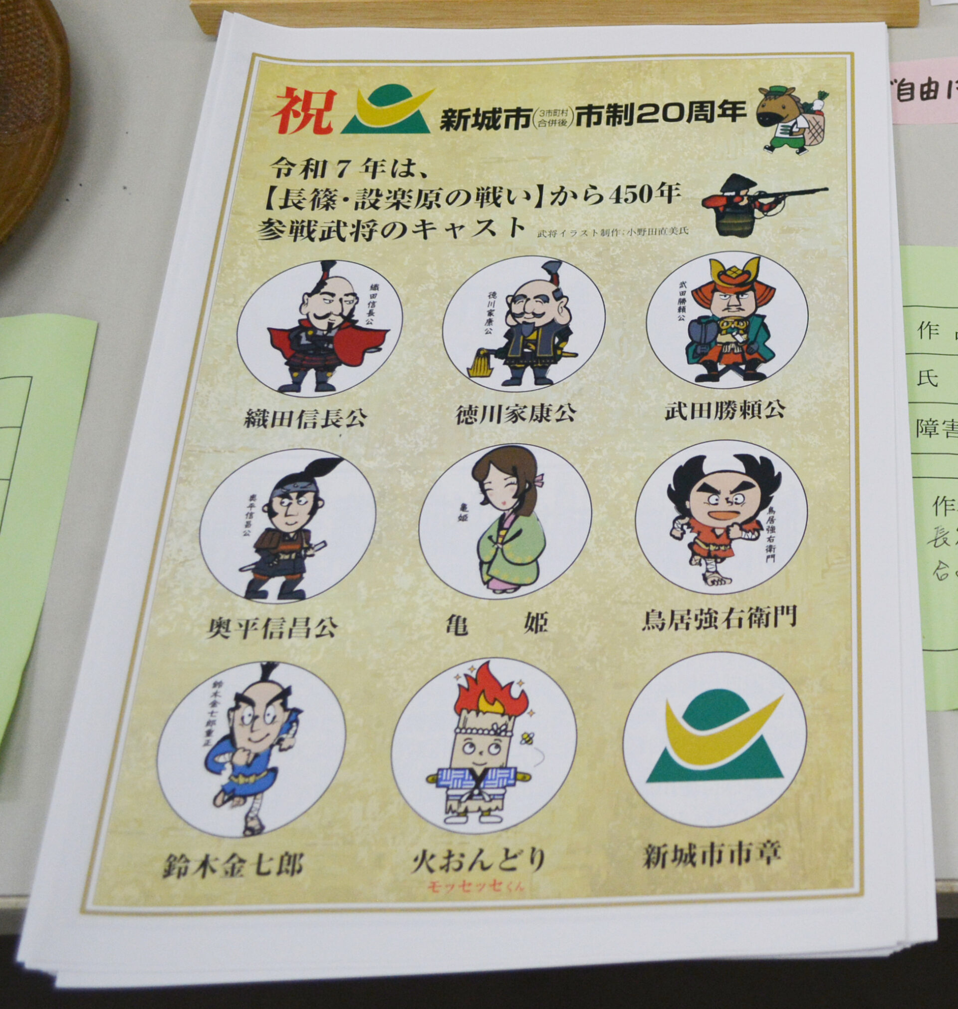 長篠・設楽ヶ原の戦いから450年と新城市制20周年に合せ参戦キャストのパンフレットを作成しました。