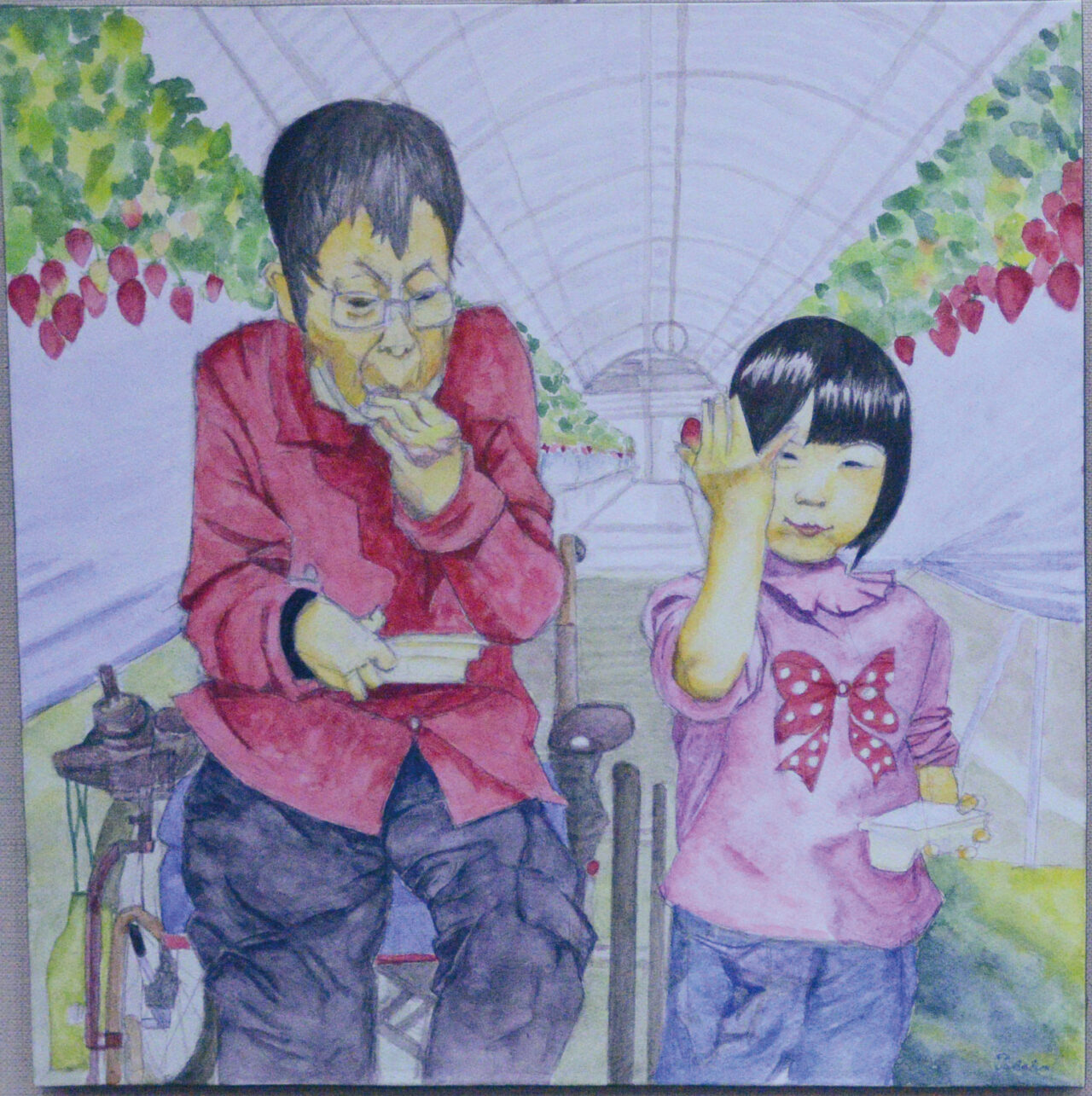 絵画-はじめての苺がり-水野孝子